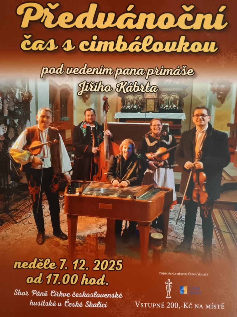 Náš sbor bude hostit Kosteleckou cimbálovou muziku z Červeného Kostelce pod vedením primáše Jiřího Kábrta, která nás uvede do času adventního a naladí na vánoční pohodu a svátky.