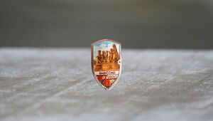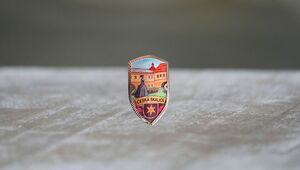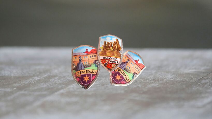 Turistický štítek na hůl byl populární typ turistického suvenýru zejména koncem 19. a v první polovině 20. století. Kovové štítky navštívených míst si turisté připevňovali na své turistické hole. Počátek měly zřejmě v alpských zemích a byly záležitostí především středoevropskou. Do českých zemí štítky přišly přes pohraniční hory z Německa. Původně měly zcela jednoduchý motiv a tvar, ale v průběhu doby se tvary stávaly rozmanitějšími.