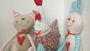 Textilní bytové dekorace - postavičky, andílci, zvířátka; a výrobky z kukuřičného šustí - figurky.