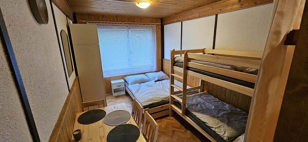 Ubytování Chatka Ema se nachází přímo v ATC Rozkoš. Jde o nově opravené ubytovací prostory. Je tedy vše nové pro sezónu 2024.Jedná se o jednu ubytovací místnost, kde je manželská postel + plnohodnotná dvoupatrová postel i pro dospělé, dále jídelní stůl pro 4 osoby a vybavená kuchyň. (lednice, vařič, varná konvice, mikrovlnka). V ubytování je elektrický proud. WC 50 metrů od ubytování včetně sprch a vody. Vše tedy hned při ruce. Před ubytováním je prostorná a zastřešená terasa, kde je možnost posedět, případně něco ugrilovat. Jedná se o klidné místo v ATC Rozkoš, kde jste mimo rušná místa kempu, ale zároveň máte vše při ruce. V ceně ubytování je i spotřebovaný el. proud! Při vjezdu do ATC Rozkoš se platí poplatek městu 10kč/den osoba + 100kč/den za auto + poplatek za psa 40kč/den (není zahrnuto v ceně ubytování) Ubytování je ideální pro rodiny s dětmi a rybáře.