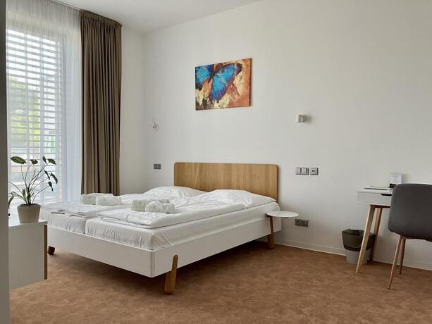 Na každém pokoji, zařízeném ve skandinávském stylu, je koupelna se sprchovým koutem, umyvadlem a toaletou, skříně s úložnými prostory a konferenční stolek. Dále je součástí pokoje přístup na wifi, televize, fén, rychlovarná konvice s instantní kávou, smetanou, selekcí čajů a mini lednice. Ubytování je vhodné pro rodiny, páry, obchodníky, manažery i firemní skupiny, na krátké i delší pobyty ( vždy bez domácích mazlíčků) . Na pokoje lze doobjednat přistýlku i dětskou postýlku.