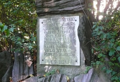 Obětem z 1.sv války z roku 1928 na hřbitově u evangelického kostela.